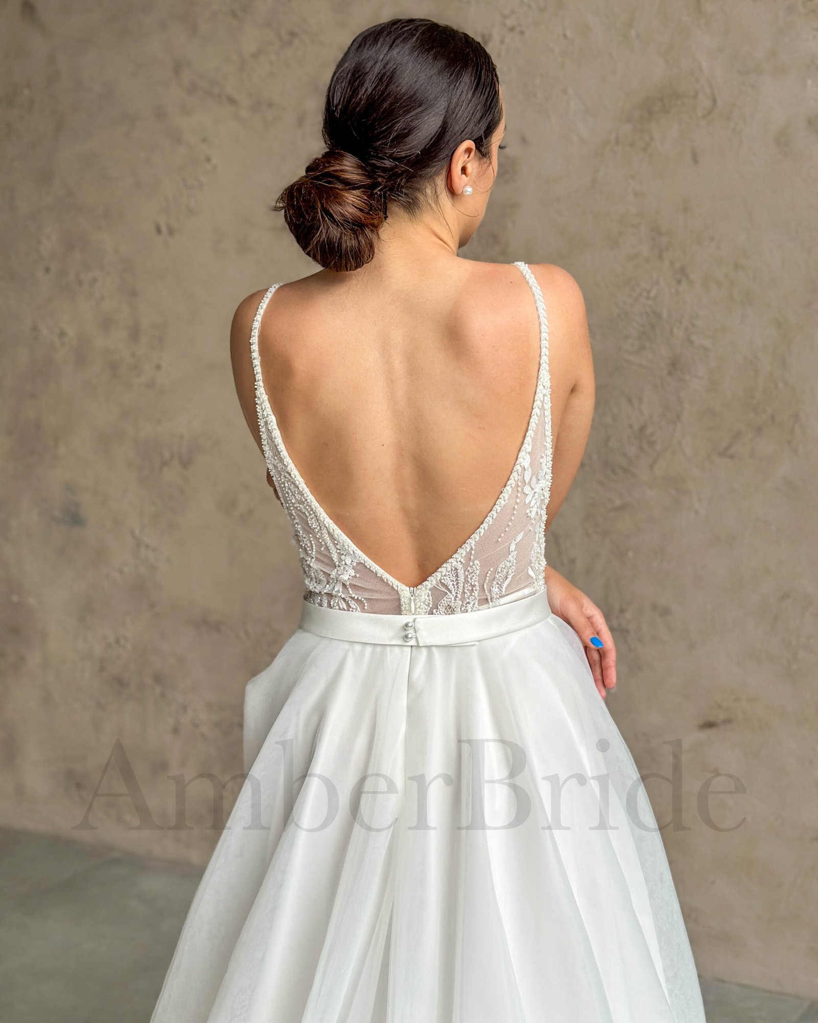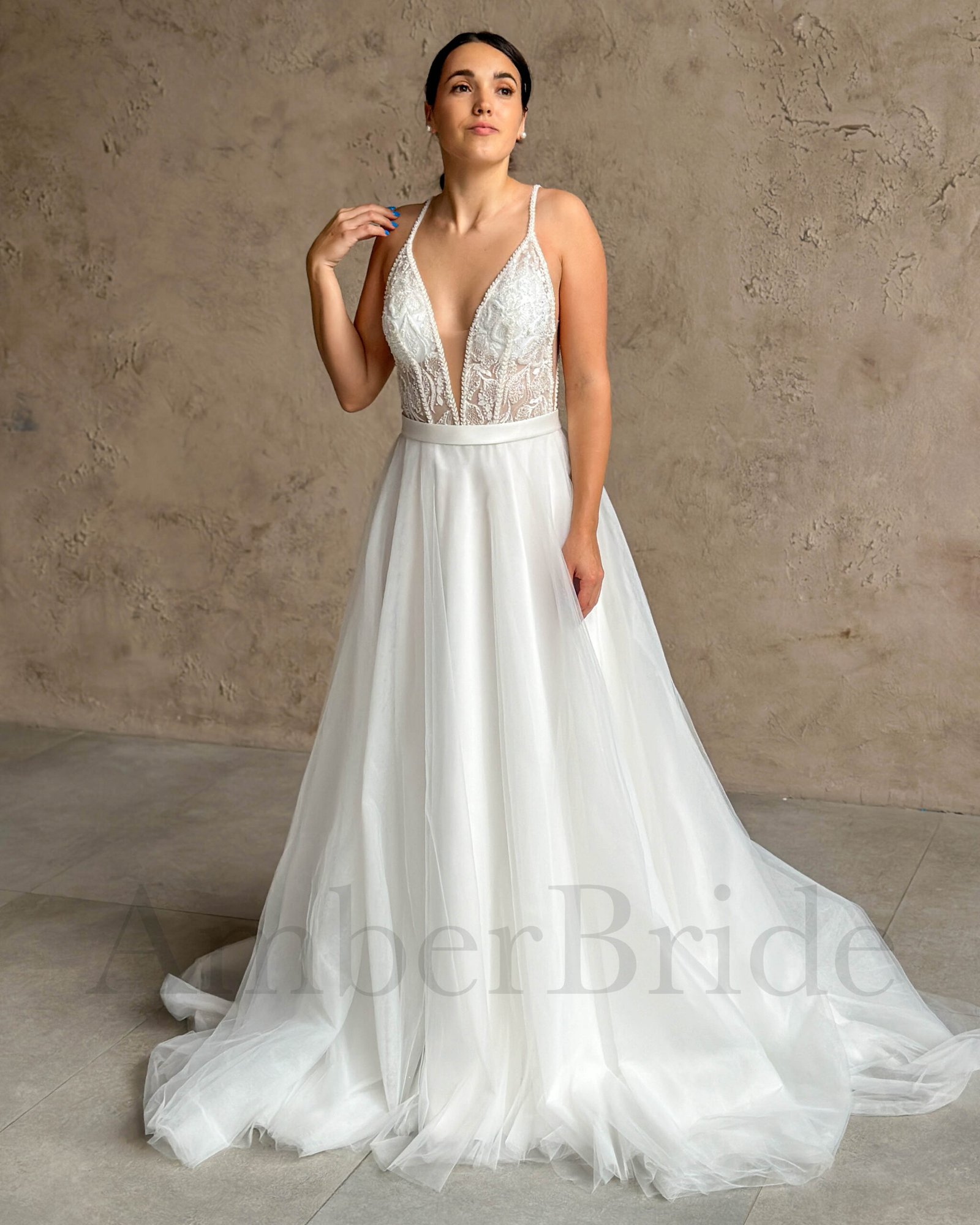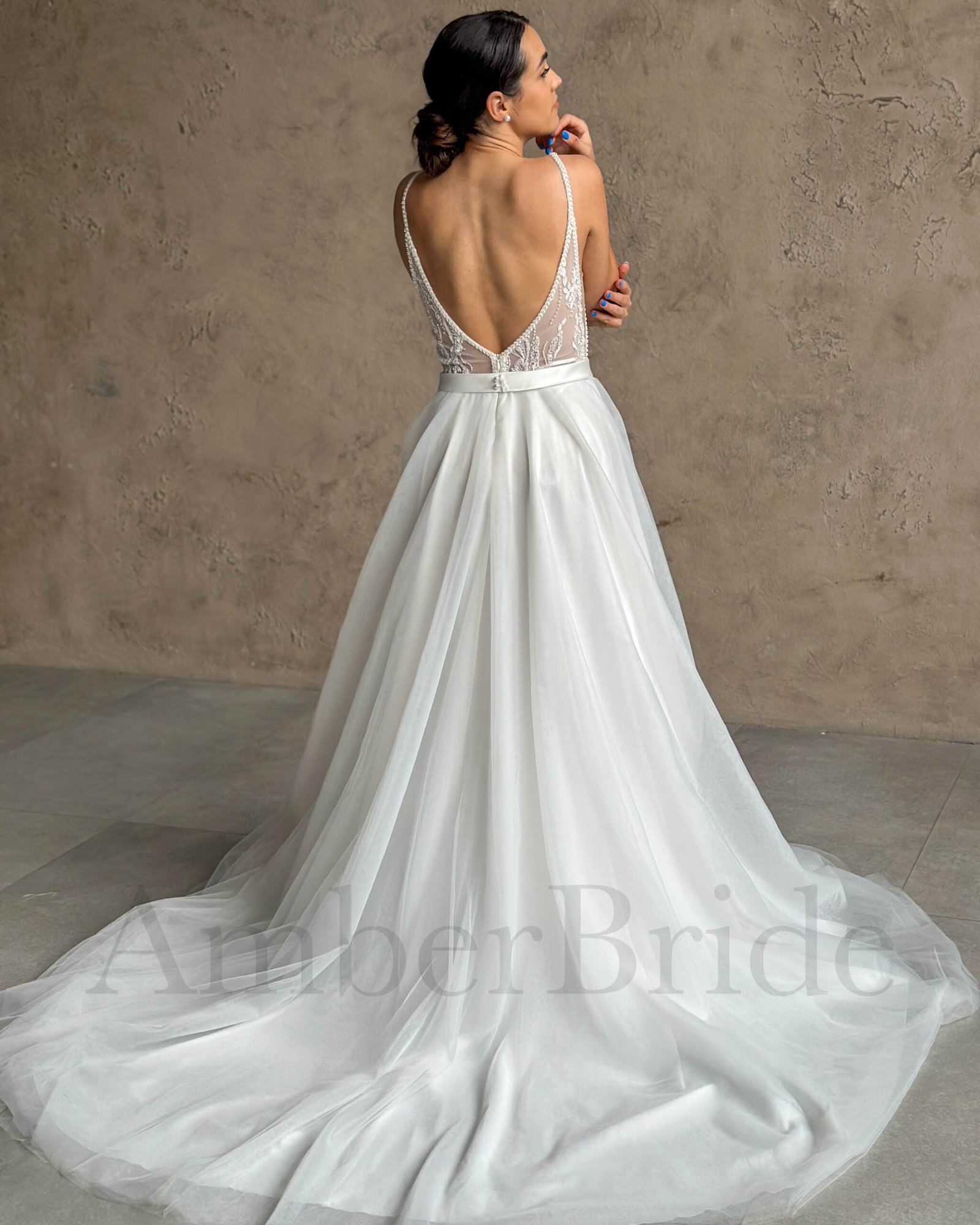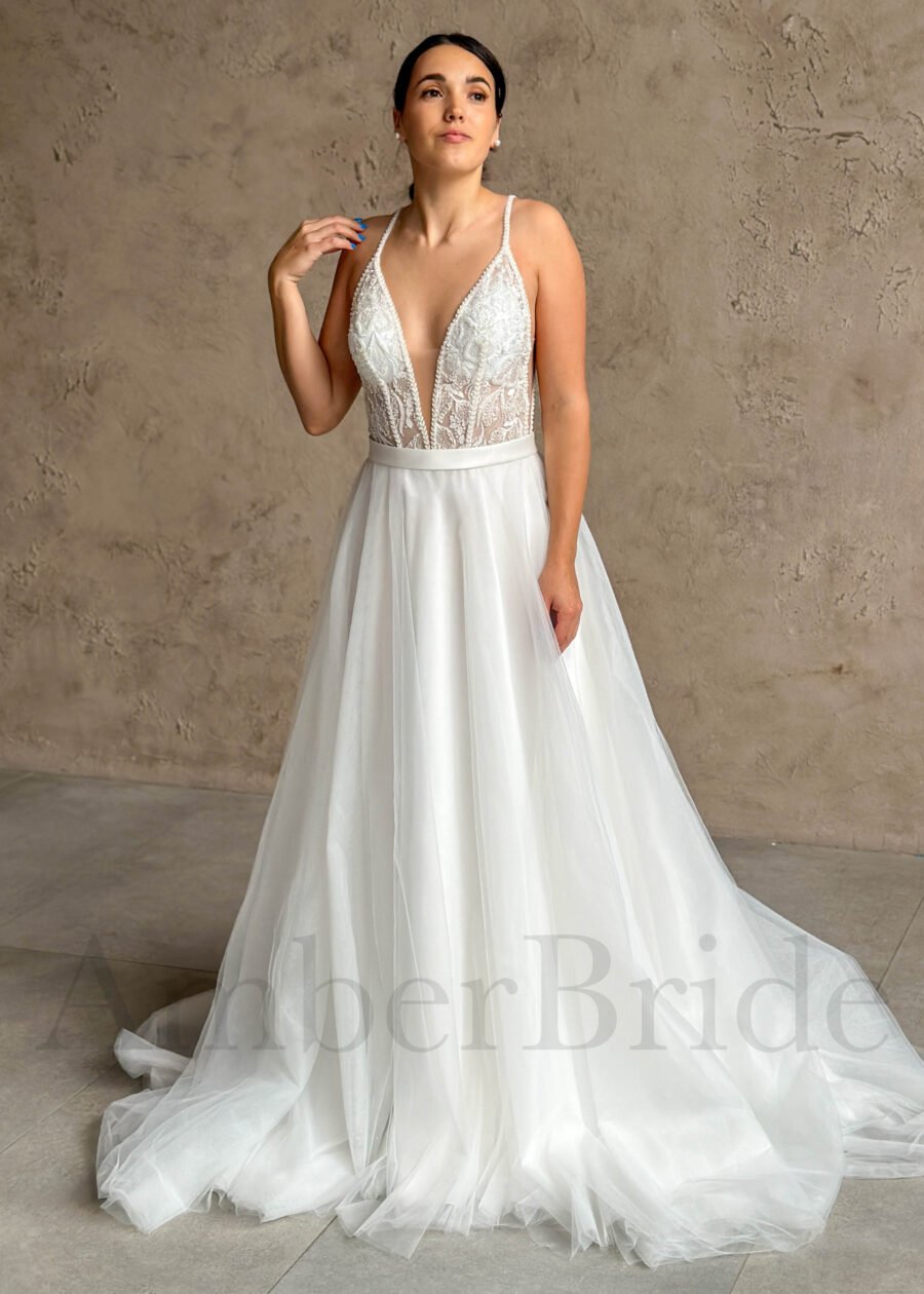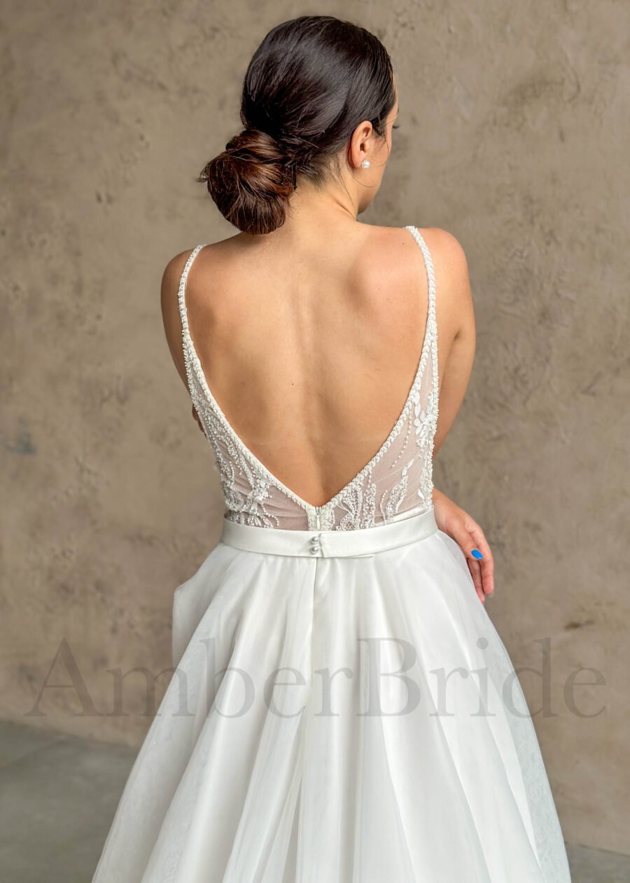 Bohemiška vestuvinė suknelė su tulio sijonu ir kutais
